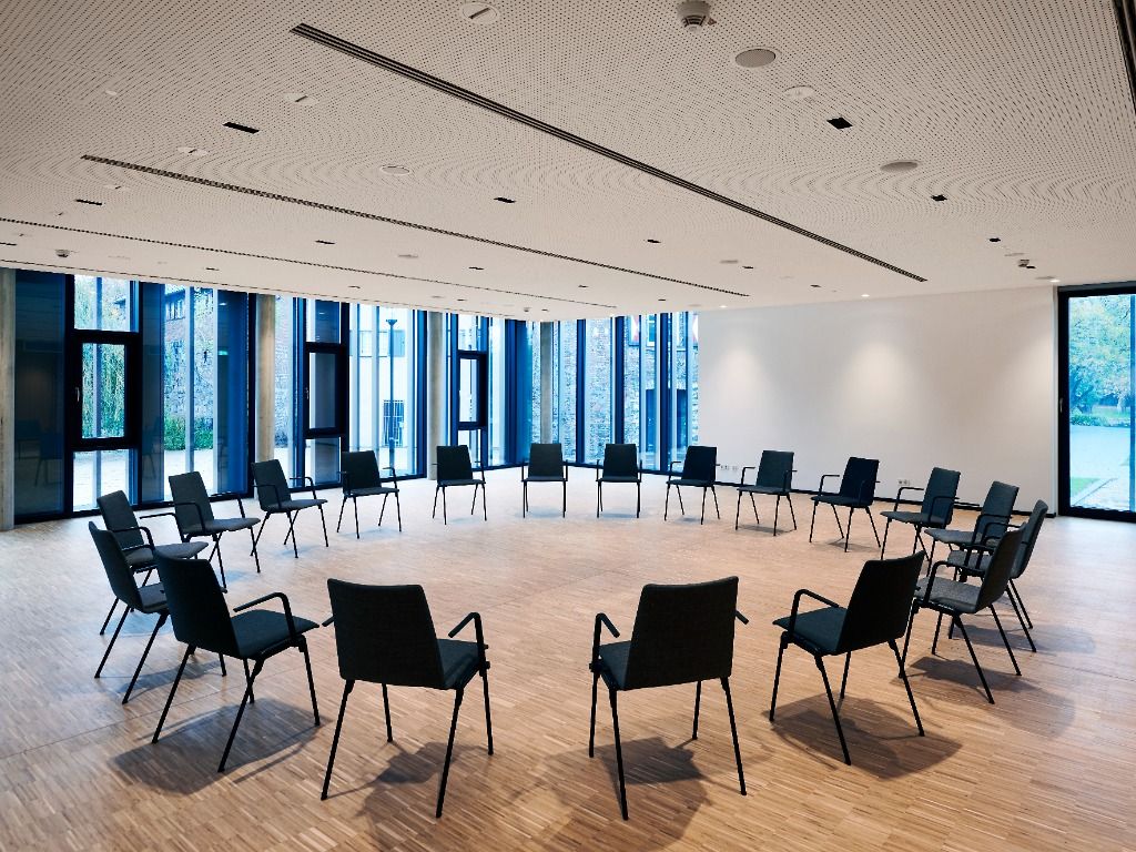 Mit dem flexiblen Raumkonzept aus wandelbaren Räumen, den großzügigen Ebenen mit Konferenzräumen und weitläufigen Foyerflächen ergeben sich zahlreiche Möglichkeiten die Räume der Kathrin-Türks-Halle für eine Veranstaltung zu kombinieren.