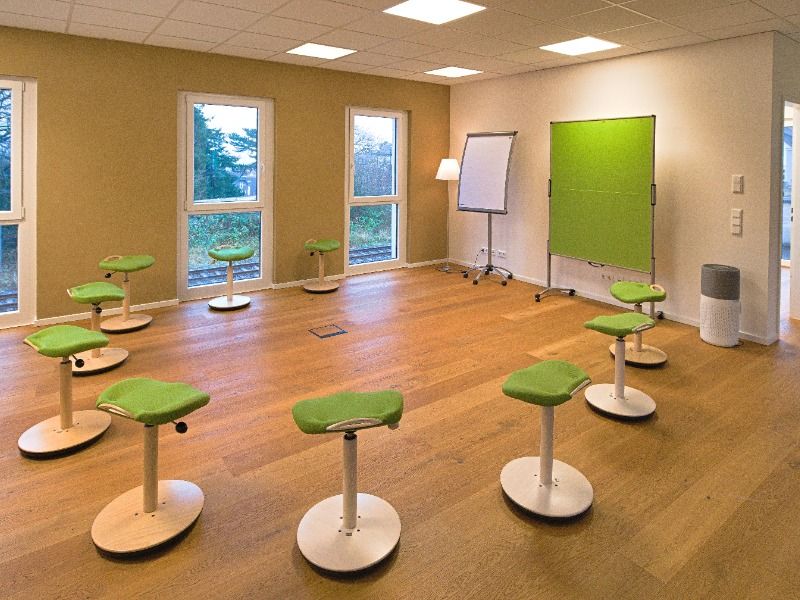 Der ZEIT:RAUM versteht sich als ein Ort, an dem man gerne Zeit verbringt, ähnlich den eigenen vier Wänden. Hier wird Wert auf eine inspirierende Umgebung gelegt, die durch natürliche Materialien und modernes Design besticht. Ziel ist es, den Nutzenden alles Notwendige zur Verfügung zu stellen, um sofort mit der Arbeit beginnen zu können. Gelegen im Bergischen Land, kombiniert der Standort eine ruhige, naturnahe Atmosphäre mit einer funktionalen, zeitgemäßen Infrastruktur. Die Räumlichkeiten zeichnen sich durch ein hohes Maß an Helligkeit und Transparenz aus. Großzügige Fensterfronten sorgen für tageslichtdurchflutete Arbeitsflächen und einen direkten Blick ins Grüne, was nachweislich die Konzentration fördert. Besonderes Augenmerk liegt auf dem optimalen Raumklima, das auch bei intensiven ganztägigen Workshops für Wohlbefinden sorgt. Die Ausstattung umfasst aktuelle Medientechnik wie Wandmonitore und hybride Konferenzlösungen, gepaart mit flexiblen ergonomischen Möblierungskonzepten, die sich mühelos an verschiedene Gruppengrößen und Arbeitsmethoden anpassen lassen. Der ZEIT:RAUM umfasst sechs Seminarräume, deren Größen von 16 qm bis 110 qm variieren. Ein offener Küchenbereich dient als Treffpunkt für Ankommende und fördert zwanglose Kommunikation. Ein Gartenbereich lädt zum Durchatmen und Entspannen ein. Es gibt 20 eigene (kostenfrei nutzbare) Parkplätze, vier davon mit Lademöglichkeit für Elektrofahrzeuge. Ein wesentliches Merkmal des ZEIT:RAUMs ist die Verzahnung von Innen- und Außenbereich. Der weitläufige Garten dient nicht nur als Pausenzone, sondern kann aktiv für Outdoor-Sequenzen, Kleingruppenarbeit oder informellen Austausch genutzt werden. Dies unterstützt insbesondere agile Teams und kreative Formate, die von einem regelmäßigen Perspektivwechsel profitieren. Durch die unmittelbare Anbindung an die Autobahn A1 ist das Seminarzentrum zudem für überregionale Teilnehmer effizient erreichbar, ohne dabei den Charakter eines Rückzugsortes zu verlieren. Insgesamt bietet das Objekt den idealen Rahmen für Unternehmen, die Wert auf Qualität, Ästhetik und eine ergebnisorientierte Arbeitsumgebung legen. Die Preisgestaltung ist transparent und unkompliziert. Es werden passende Pakete angeboten, die eine klare Kostenübersicht im Vorfeld ermöglichen. Die gesamte Ausstattung des ZEIT:RAUMs ist in den Preisen inbegriffen. Das Catering wird vom Restaurant Klosterschänke bereitgestellt.