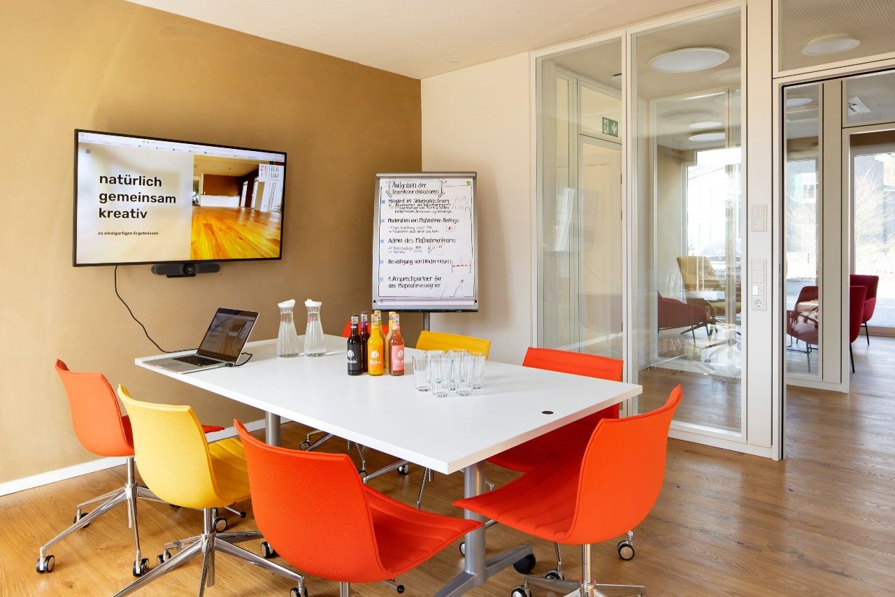 Kostenfreies WLAN KFZ befahrbar Klimaanlage Tagungstechnik Barrierefreier Zugang zur Location Kostenlose Parkplätze vorhanden Hybride Events - PRAXISFELD GmbH | ZEIT:RAUM