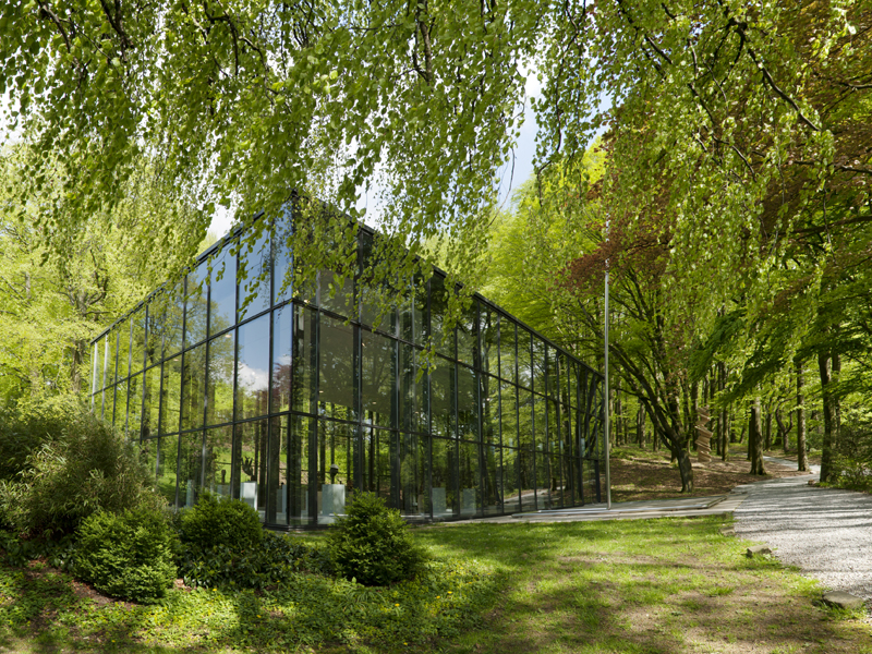 Der Skulpturenpark Waldfrieden braucht den Vergleich mit großen Vorbildern nicht zu scheuen: Hier entwickelt sich ein Ort, an dem sich Kunst und Natur, Geschichte und Gegenwart in so einzigartiger Weise begegnen, dass man versucht ist, von einem Gesamtkunstwerk zu sprechen. Ein Besuch im Skulpturenpark Waldfrieden verspricht zu jeder Jahreszeit ein besonderes Erlebnis. Seit Anfang Oktober 2017 ist mit Eröffnung der dritten und letzten Austellungshalle des Skulpturenparks die bauliche Entwicklung, seit der Parkerweiterung im Jahr 2013, abgeschlossen.