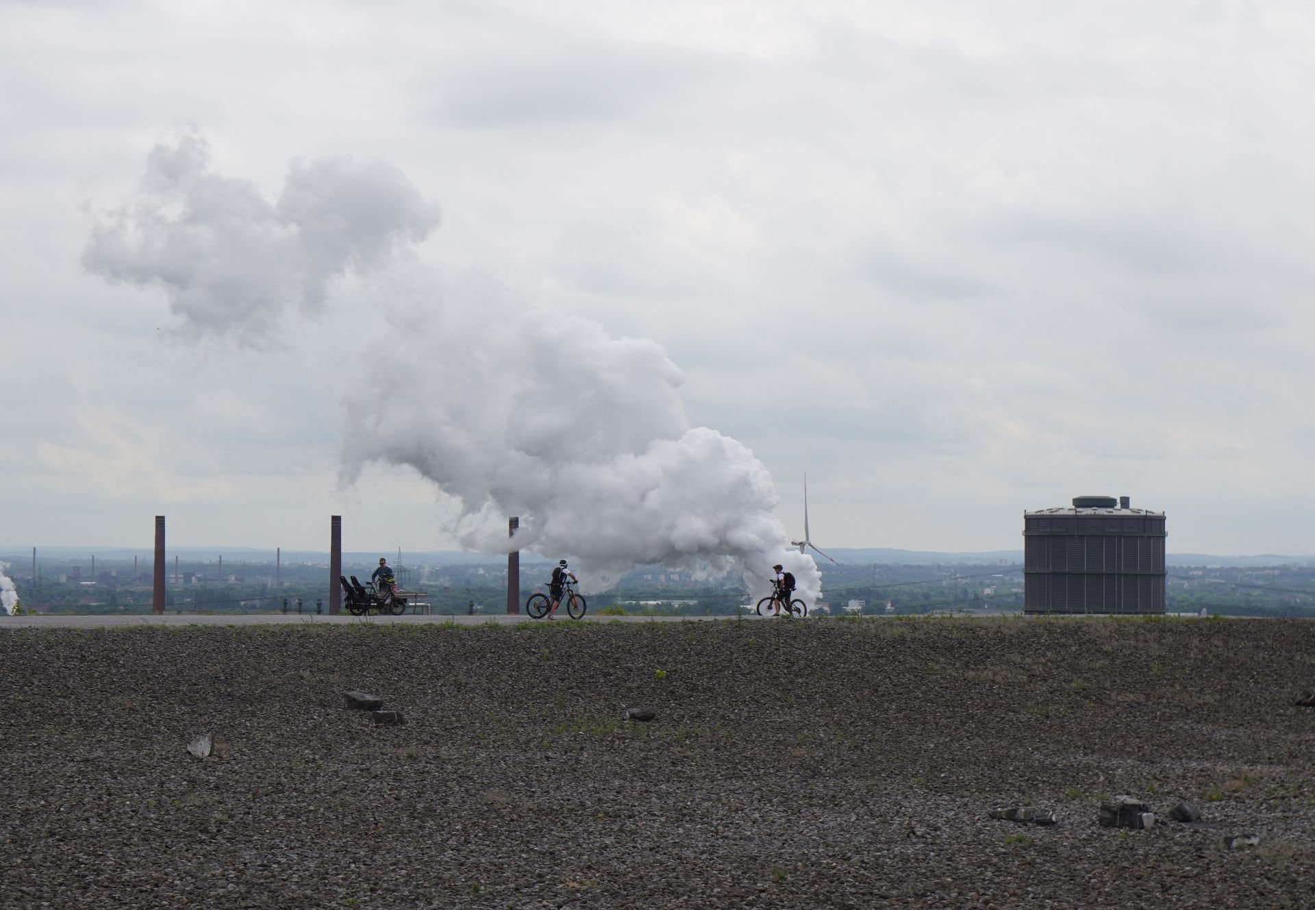 Zurück auf dem Haldentop mümmelten wir unser „lecker Bütterken“ und bewunderten dabei eine gigantische, knallweiße Löschwolke auf ihrem Weg in den Himmel. In Bottrop findet sich noch eine der wenigen betriebenen Kokereien im Land, wie wir am Folgetag noch lernen sollten.
