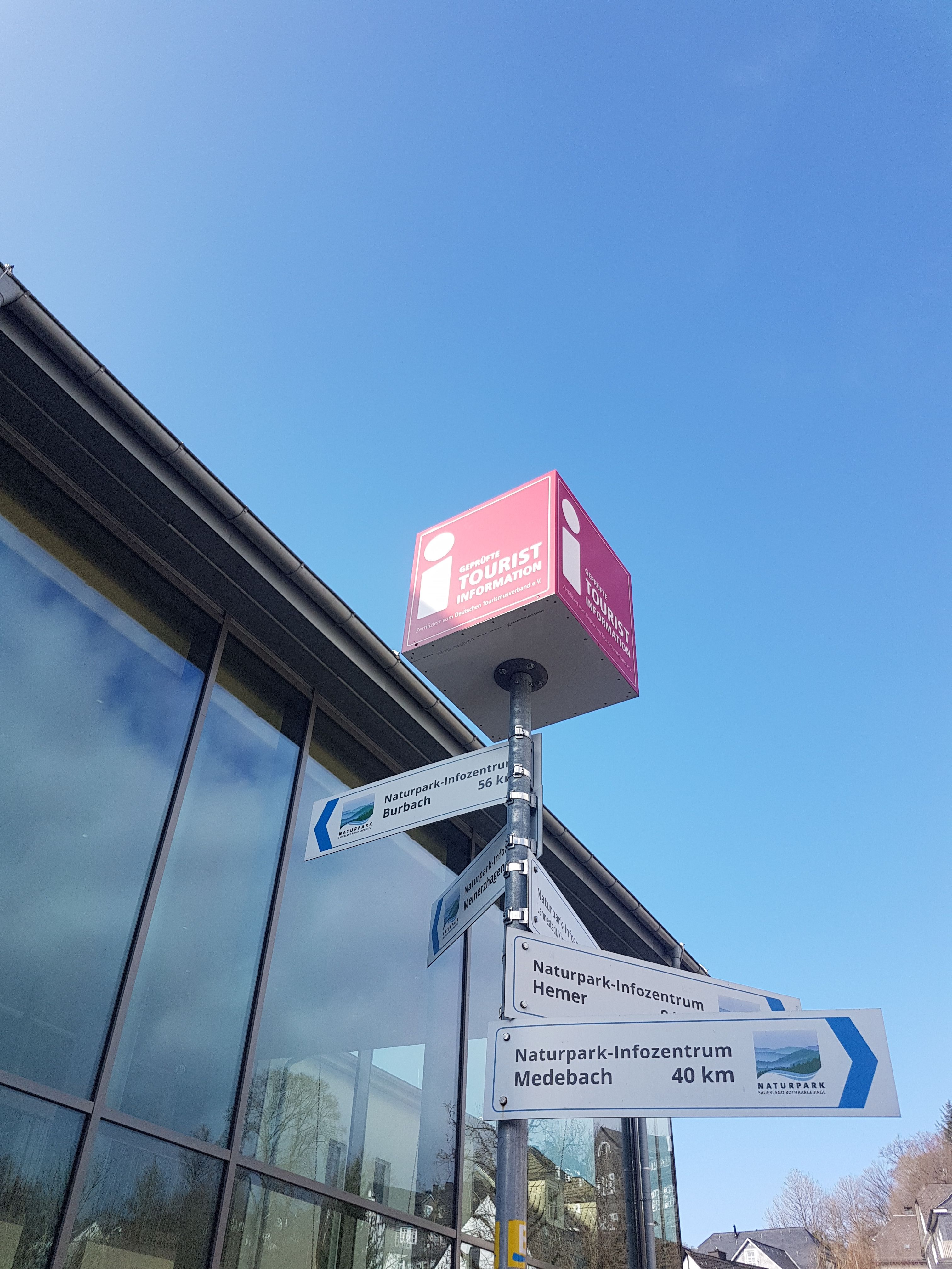 18 Kilometer später ist es soweit, am Markplatz 1a in Bad Berleburg. Wir sind wieder in unserem Heimatkreis Siegen-Wittgenstein und erleben im gläsernen Besucherzentrum neben dem Lesekorb nicht nur spielerische Optionen für Wisent-Begegnungen. Auch am großen Touch-Screen-Monitor puzzeln und zoomen wir uns beherzt zu zahlreichen Highlights rund um die sechs Naturpark-Portale im Sauerland, Siegerland und Wittgensteiner Land: "Da! Die Ginsburg! Kommt mir bekannt vor." – "Kann ich verstehen!", schmunzele ich der Mittleren zu. "So oft wie wir schon Freizeit in der Ginsberger Heide verbracht haben!" – "Müsste von hier bis nach Hilchenbach etwa eine halbe Stunde Fahrt sein. Sollen wir auf dem Heimweg noch einen Abstecher mit Turmbesteigung und Fernblick machen?", schlägt der Vater vor. "Aber!", schaltet sich die Jüngste ein. "Wir wollten doch zum Schloss!" Stimmt!