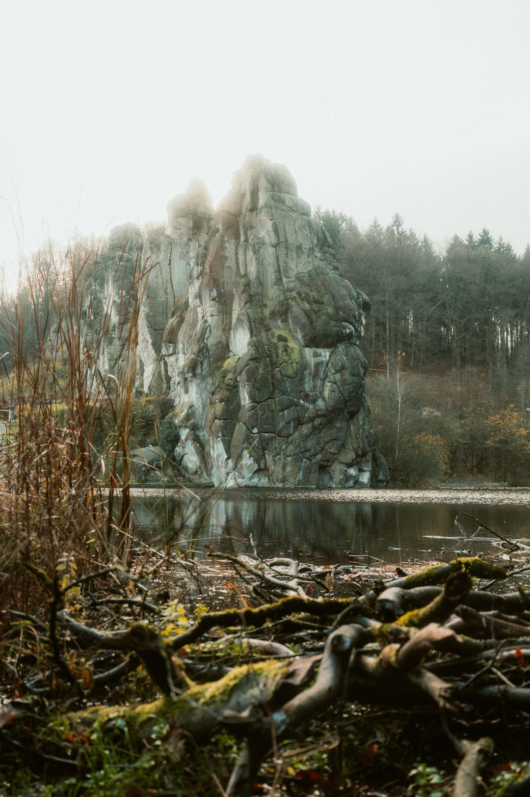 Unten macht derweil eine Gruppe junger Engländer Selfies von sich und Arminius, der hier der Sage nach die Römer in die Knie zwang. 9,5 Kilometer und drei Stunden später werde ich sie noch einmal wiedersehen. Denn nach dem Abstieg startet meine eigentliche Mission des heutigen Tages: eine Wanderung auf den Hermannshöhen, einem der Top Trails of Germany. Ich habe mir ein Teilstück von Etappe 9 vorgenommen, die als der spektakulärste Abschnitt des insgesamt 226 Kilometer langen Hermanns- und Eggeweges gilt. Denn über den Kamm des Teutoburger Waldes führt sie vorbei an den Externsteinen, jenen 70 Millionen Jahre alten Felsformationen, um die sich seit jeher allerhand Mythen und Sagen ranken. Genau dort will ich hin.