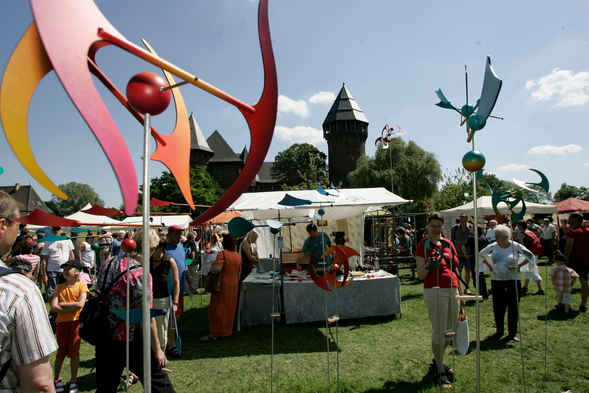 Der Flachsmarkt rund um Burg Linn ist ein Mekka für Mittelalterfans, Kunsthandwerker:innen und Freunde historischer Berufe: Über 300 Ausstellende aus ganz Deutschland und dem nahegelegenen Ausland demonstrieren hier an Pfingsten, wie sie Kleidung, Kulturgüter und Nutzobjekte nach traditioneller Art produzieren.