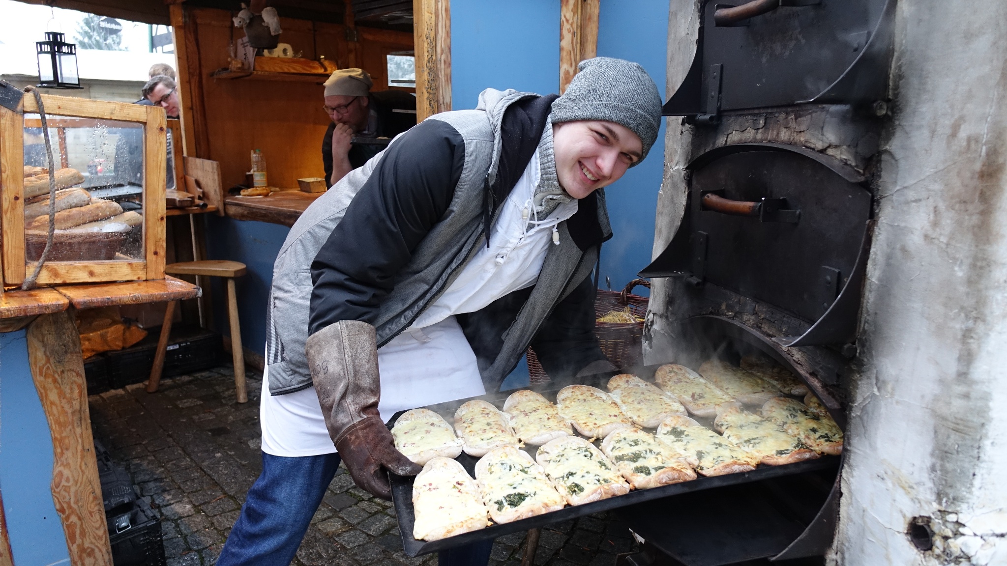 Im Technikmuseum kann in der großen Maschinenhalle unterschiedlichen Kunsthandwerker*innen bei der Arbeit zugeschaut werden. Die beliebte Spekulatius-Bäckerei ist auch wieder dabei.