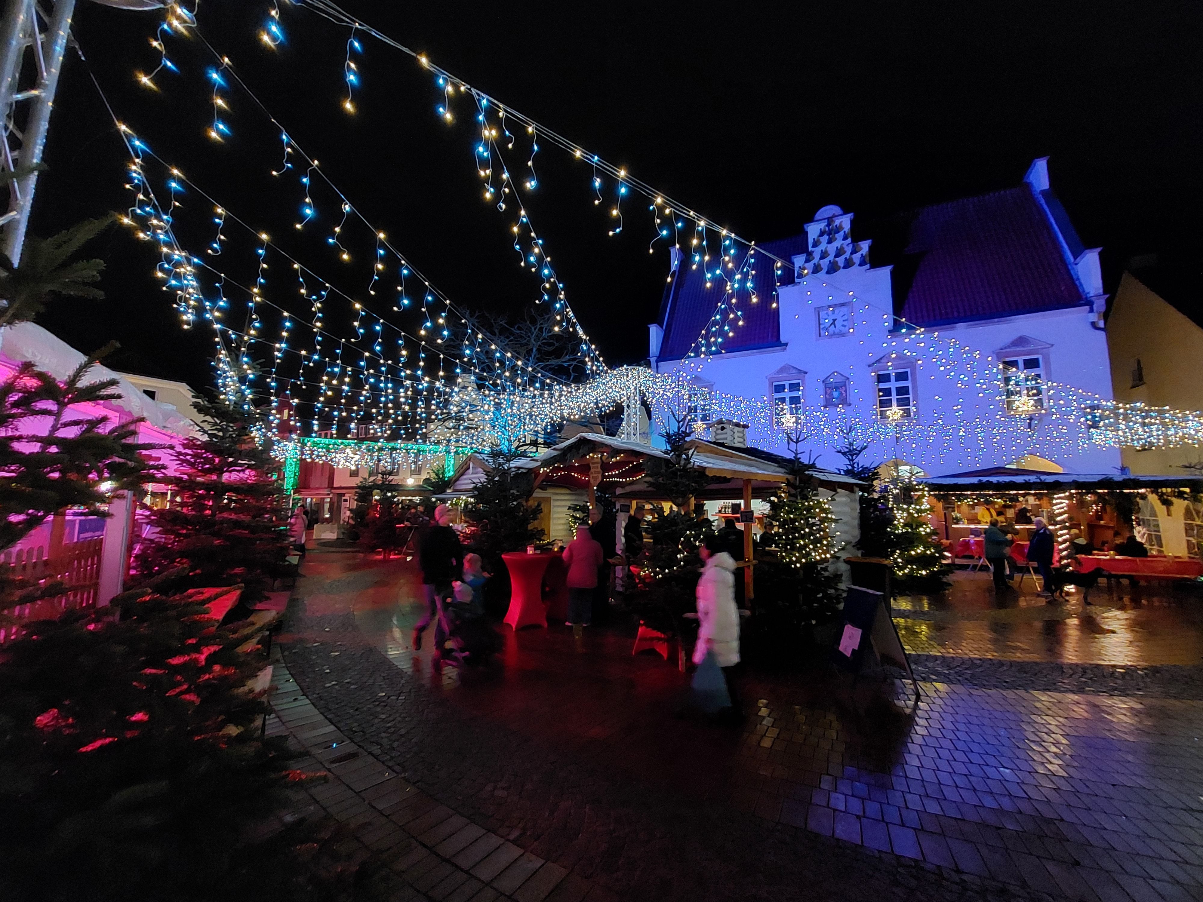 Der traditionelle Nikolausmarkt in Haltern am See startet jedes Jahr am ersten Adventswochenende und bietet eine einladende Atmosphäre für Besuchende. Der Marktplatz verwandelt sich in einen Hüttenzauber, wo Gäste unabhängig vom Wetter die gemütliche Stimmung genießen, an den Ständen stöbern und bei weihnachtlicher Musik ein Heißgetränk schlürfen können. Die Erlebnis-Schlittschuhbahn bietet die Möglichkeit für einige schnelle Runden auf dem Eis. Für diejenigen, die nach einzigartigen Geschenken suchen, bietet das angebotene Kunsthandwerk eine Vielzahl von Optionen. Ein Lichtervorhang, der dank energieeffizienter LEDs den gesamten Platz erhellt, sorgt für eine besinnliche Atmosphäre.
