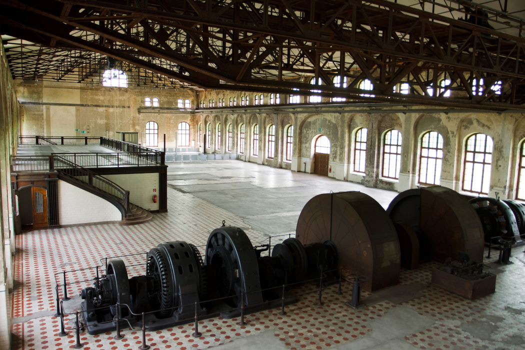 Gäste lernen das repräsentative Gebäude bei einem Rundgang näher kennen, wenn sie etwa auf den bekrönenden Dreiecksgiebel über dem Eingangsbereich, die beiden noch erhaltenen Fördermaschinen in den Seitenflügeln oder den einstigen Umformer blicken, der eine Art von Elektrizität in eine andere überführte.
