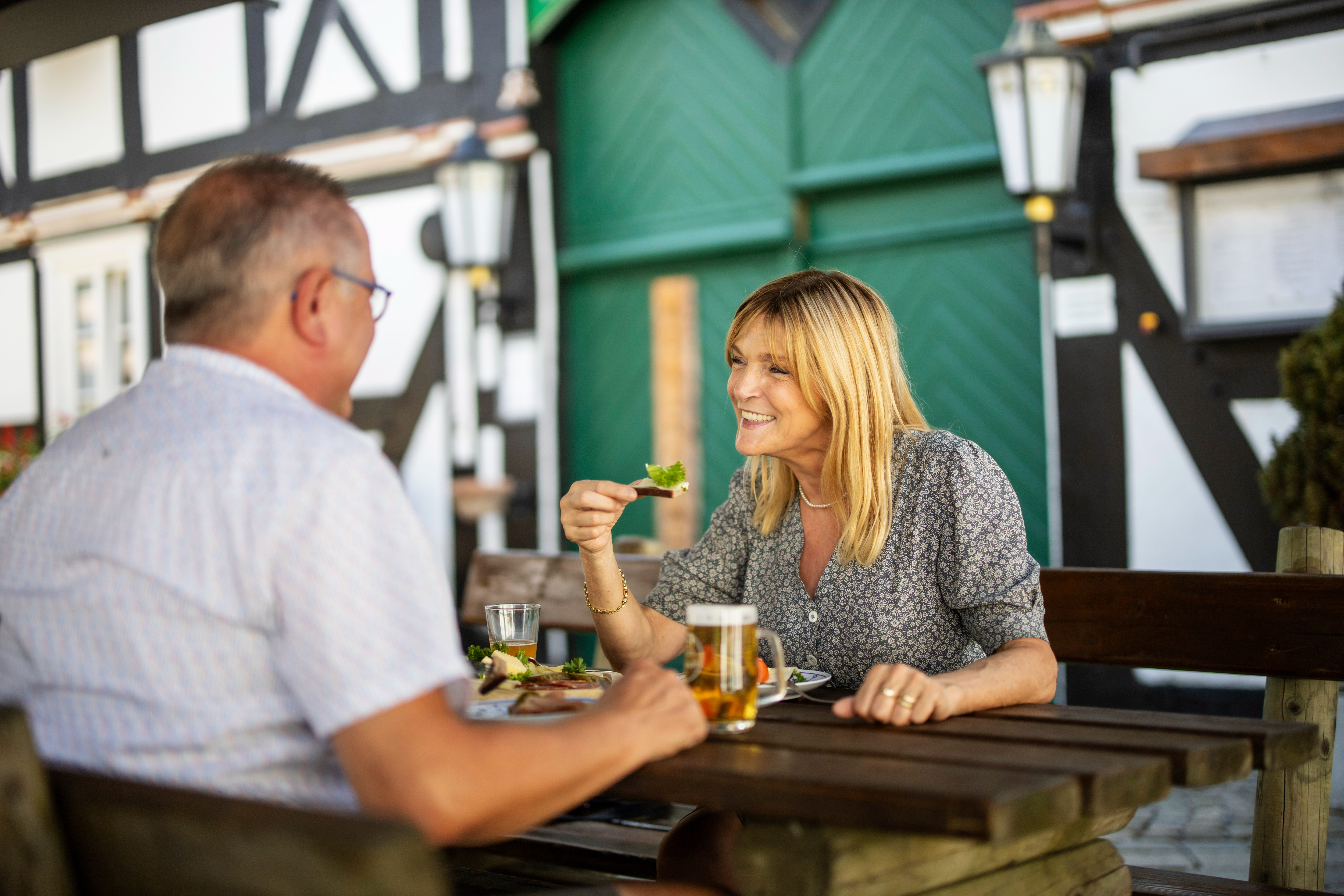 Übernachtung in 642 Metern Höhe im Hotel Jagdhaus Wiese. Das familiengeführte 4-Sterne-Superior-Hotel direkt am Rothaarsteig verbindet ländlichen Luxus mit einem großen Hotelpark. Komfortable Zimmer treffen auf ein großzügiges Schwimmbad, einen stilvollen Saunabereich und großzügige Ruhezonen für die perfekte Entspannung.