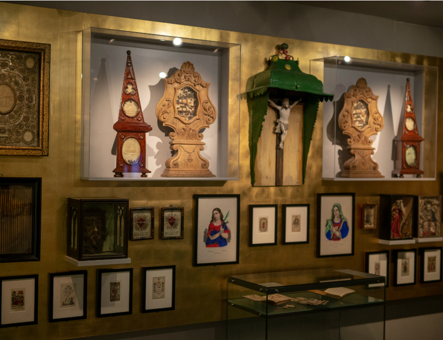 Insgesamt verfügt das Museum mittlerweile über 30.000 Exponate aus allen Bereichen des religiösen Lebens in Westfalen, der religiösen Volkskunst aus aller Welt sowie sakraler Kunst. Waren es zunächst vor allem Gebrauchsgegenstände und Handwerke wie der Blaudruck, wuchs die Sammlung bald um „verschiedene Zeugnisse der religiösen Volkskunde“. So bekommen die Besucher beim Rundgang unter anderem Teile des Nachlasses von Kardinal Clemens August Graf von Galen zu sehen. Höhepunkt der Ausstellung ist ein ganz besonderen „Smachtlappen“, wie man das kostbare Telgter Hungertuch aus dem Jahr 1623 auf Plattdeutsch nennt. Für das Exponat, eine Filetstopfarbeit aus doppelt gezwirnten Leinenfäden, wurde eigens ein Raum geschaffen. Hier können die Besucher die dargestellten Motive, darunter der Leidensweg Christi und das „Lamm Gottes“, ganz in Ruhe bestaunen.