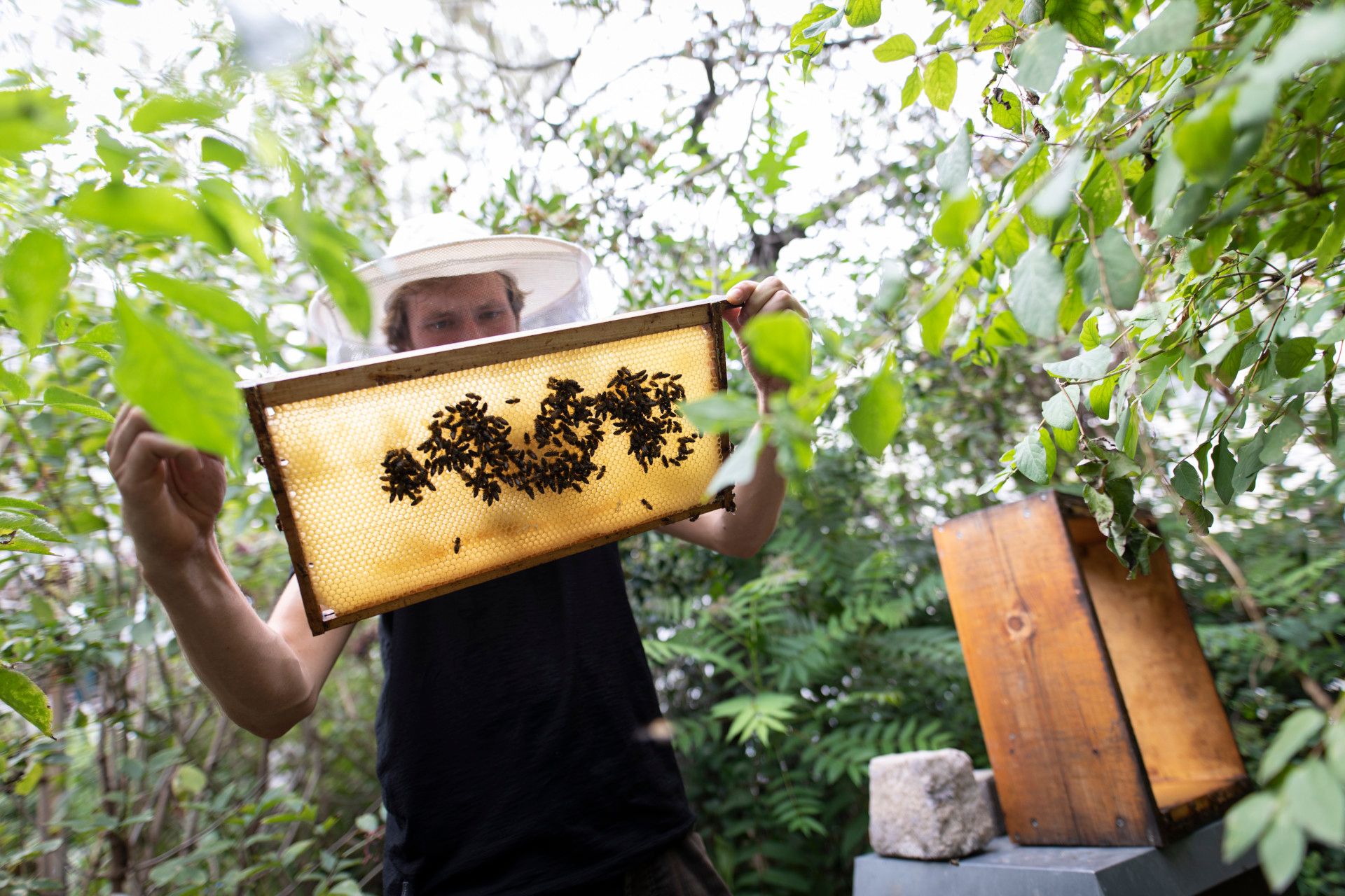 Als die Studentin der Agrarwissenschaften und ihre Kommilitonin Miriam Brink vor etwas mehr als drei Jahren das erste Mal mit ihrem Konzept an die Stadt herantraten, ging es eigentlich um einen Platz für Bildungsarbeit rund um Artenvielfalt, Nachhaltigkeit und den gesamten natürlichen Kreislauf. Eine Art Garten mit eigenem Anbaucafé. Das war die ursprüngliche Idee. Dass der Gemeinschaftsgarten nun doch eine Nummer kleiner ausgefallen ist, stört die junge Frau jedoch überhaupt nicht. Im Gegenteil. „Wir hatten von Anfang an unglaublich viele Unterstützer, und auch das Interesse der Anwohner war riesengroß.“ Schon nach dem ersten Nachbarschaftsfest waren alle sechs Hochbeete verpachtet, erinnert sich Imke. Mittlerweile sind es 20 dieser hölzernen Konstruktionen, in denen alles wächst, was auch der heimische Garten an Gemüsesorten hergibt. Zudem gibt es ein Kräuterbeet für alle sowie, etwas versteckt zwischen den Büschen und Sträuchern, drei Bienenstöcke.