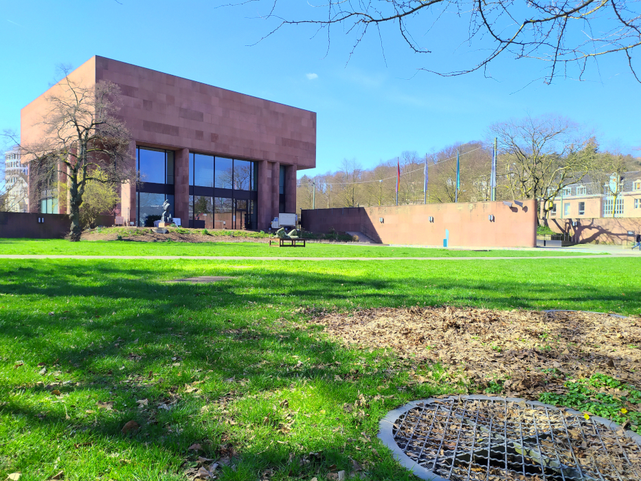 Ruhig sitzt er da. Auf seinem steinernen Felsen. Den Kopf auf die rechte Hand gestützt. Der Blick schaut gen Boden. Die Gedanken streifen weit: Seit der Eröffnung der Kunsthalle Bielefeld im Jahr 1968 sinniert August Rodins „Denker“ vor dem Haupteingang des Museums am südwestlichen Ende der Altstadt. Die Statue weist Gästen den Zugang zu einer der außergewöhnlichsten Kunstsammlungen Nordrhein-Westfalens, die mehr durch ihre Qualität als durch Quantität besticht. Lauter Einzelstücke bestimmen die Kollektion anstatt ganzer Werkgruppen. Sie sind in einem kubistischen Bau mit einer Fassade aus rotem Sandstein untergebracht, der selbst bereits als architektonisches Kunstwerk gilt.