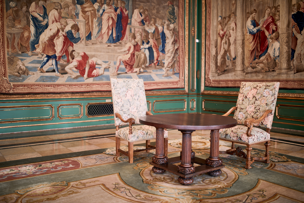 Einblick in den Lebensstil des Großbürgertums bekommen sie beim Rundgang durch die früheren Empfangssalons, den Speisesaal und die Bibliothek im „Großen Haus“. Der Festsaal und ein repräsentativer Wohnraum im Obergeschoss sind mit einem gläsernen Dach ausgestattet. Neben historischen Möbeln, wie dem massiven Doppelschreibtisch von Alfred Krupp, sowie zahlreichen Familienporträts fallen vor allem die edlen Wandteppiche auf, mit denen die Familie Krupp ihr Wohnhaus schmückte. So wurde die „Obere Halle“ des Wohnhauses ab 1913 eigens für die Wandteppichfolge „Die sieben freien Künste“ umgestaltet. Die Dekoration des Gartensaals, der das Große und Kleine Haus miteinander verbindet, wurde im Stil Louis XIV. auf die Wandteppichfolge „Szenen aus der Apostelgeschichte“ abgestimmt.