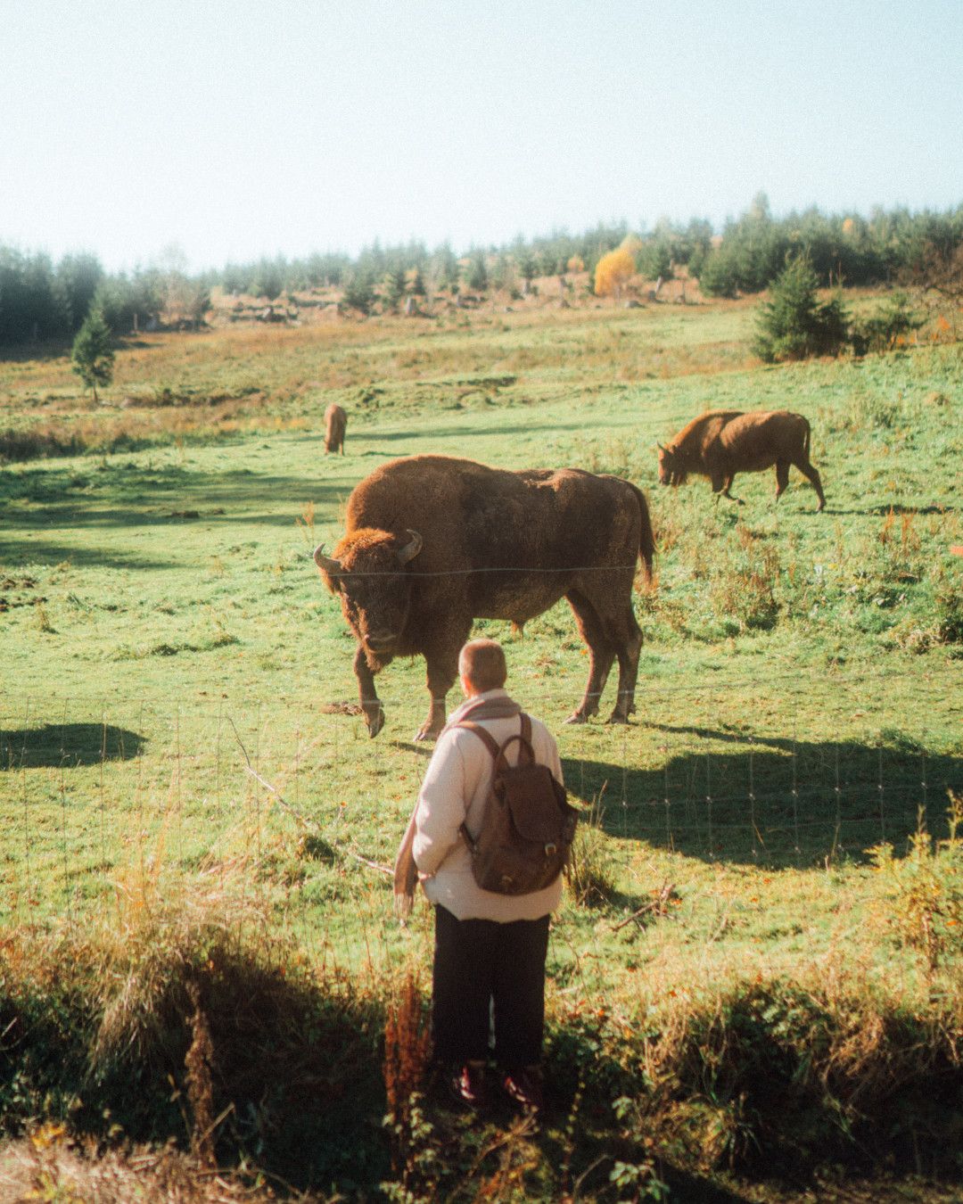 Für alle, die die Wisente garantiert sehen möchten, gibt es die Wisent-Wildnis am Rothaarsteig, ein eingezäuntes 20 Hektar großes Areal, in dem eine Herde mit mehreren Tieren lebt. Auf einem 3 Kilometer langen Rundweg kannst Du die beeindruckenden Tiere aus nächster Nähe beobachten. Holzstege und Aussichtsplattformen ermöglichen Blicke auf die sanften Riesen, während Info-Tafeln spannende Details über die Wisente, ihr Verhalten und ihre Geschichte liefern.
