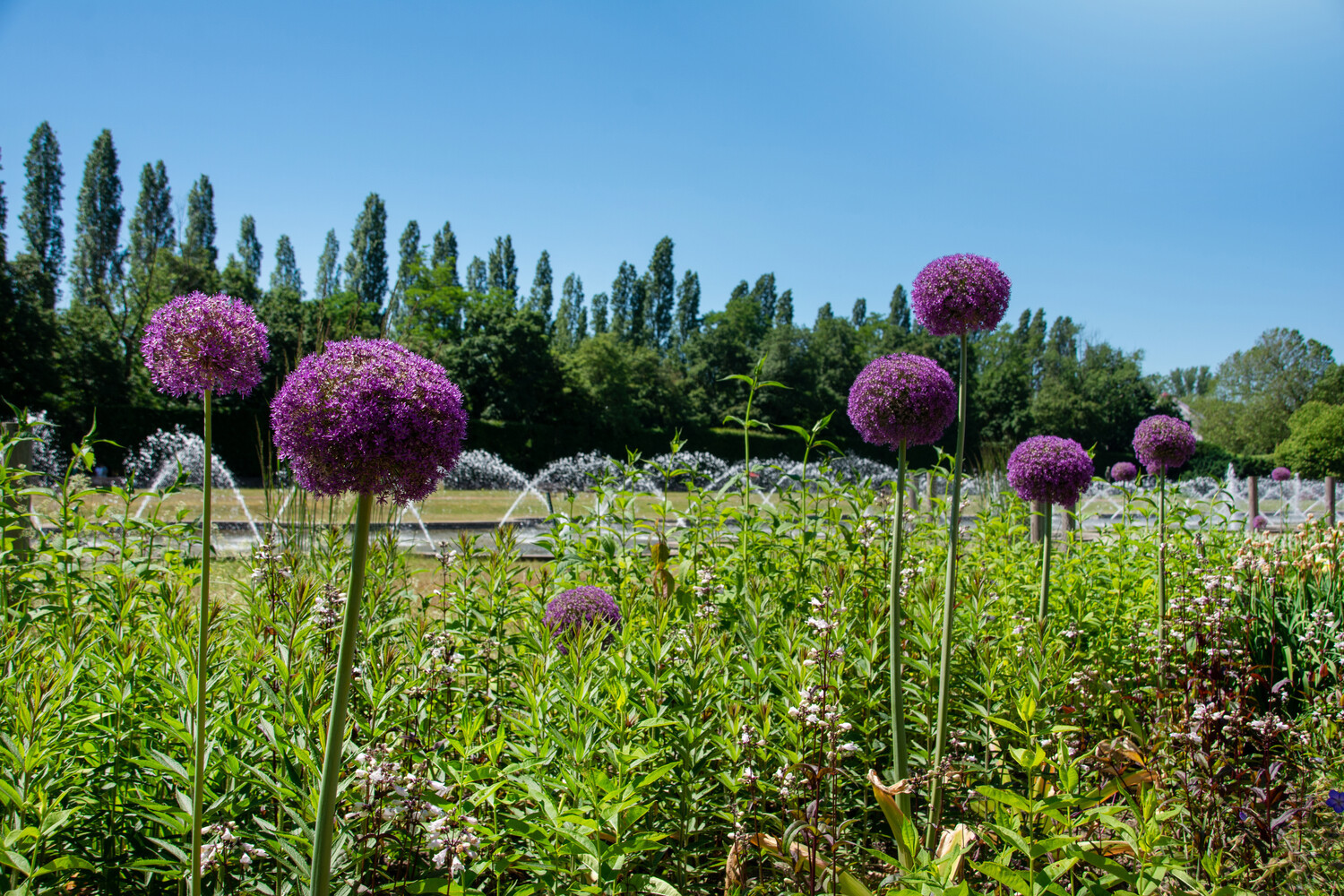Doch der Nordpark entfaltet seine Schönheit nicht nur in Stein und Wasser. Schritt für Schritt wird die Umgebung lebendiger, Farben gewinnen an Intensität. Auf den weitläufigen Rasenflächen der Gartenachse, im Blumenring oder auf den terrassierten Ebenen des sogenannten Tanzrings ragen bunte Gewächse ihre Köpfe in den Himmel, während Blüten in allen Nuancen um die Wette leuchten.