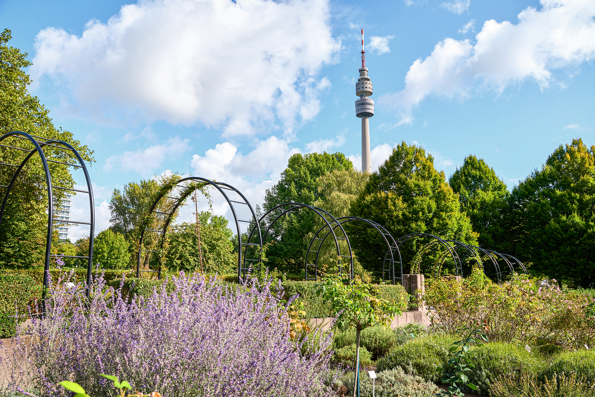 Doch die Königin der Blumen ist hier nur ein Beispiel für die beeindruckende Pflanzenvielfalt, die der 70 Hektar große Westfalenpark zu bieten hat. Einst Schauplatz der Bundesgartenschauen von 1959, 1969 und 1991, begeistert er heute mit abwechslungsreichen Themengärten. Ein idyllischer Bauerngarten lockt mit Gemüse, Obst und Kräutern, während nachhaltige Staudenhochbeete und eine Heidelandschaft mit Besen- und Schneeheide-Arten die Sinne verzaubern.