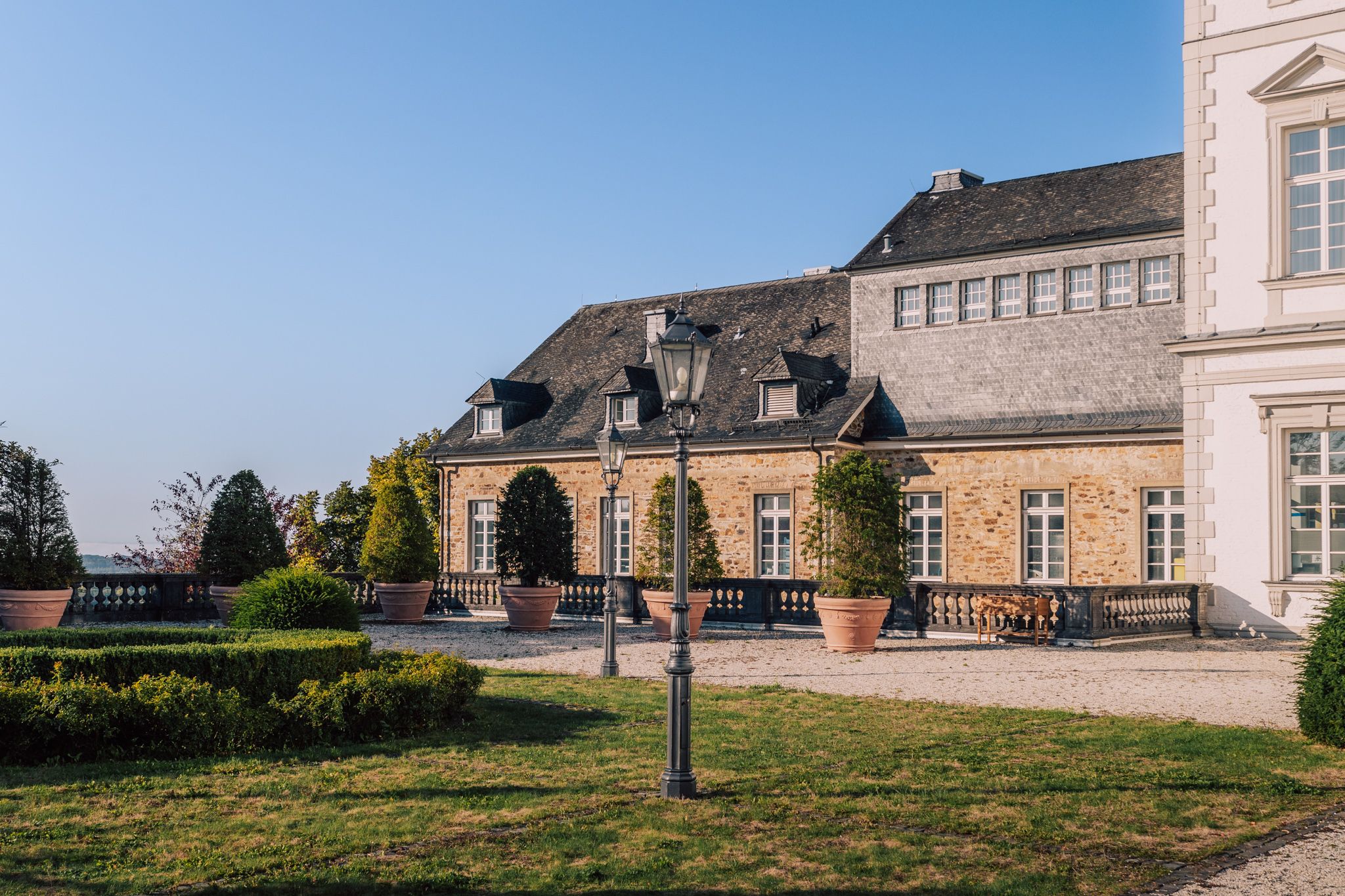 Versailles und Winchester Castle standen Pate, als Kurfürst Johann Wilhelm II. im Jahr 1703 den Bau des repräsentativen Jagdschlosses Bensberg in Auftrag gab. Wie den Schlossherren selbst und später zum Beispiel auch Johann Wolfgang von Goethe begeistert die Gäste bis heute der Blick, der sich von der Bensberger Bergterrasse auf die Domstadt Köln bietet. Bevor in der Schlossanlage im Jahr 2000 das 5-Sterne-Superior Althoff Grandhotel eröffnet wurde, dienten die Gebäude unter anderem als Lazarett, Kadettenhaus und Internat. Heute übernachten die Besuchenden nach einer Wanderung rund um das Schloss in komfortablen Suiten statt im Schlafsaal und haben die sagenhafte Wahl aus zwei Bars und drei Restaurants im Schloss, darunter die mit zwei Michelin-Sternen höchstdekorierte Gourmet-Küche in Nordrhein-Westfalen von Starkoch Joachim Wissler