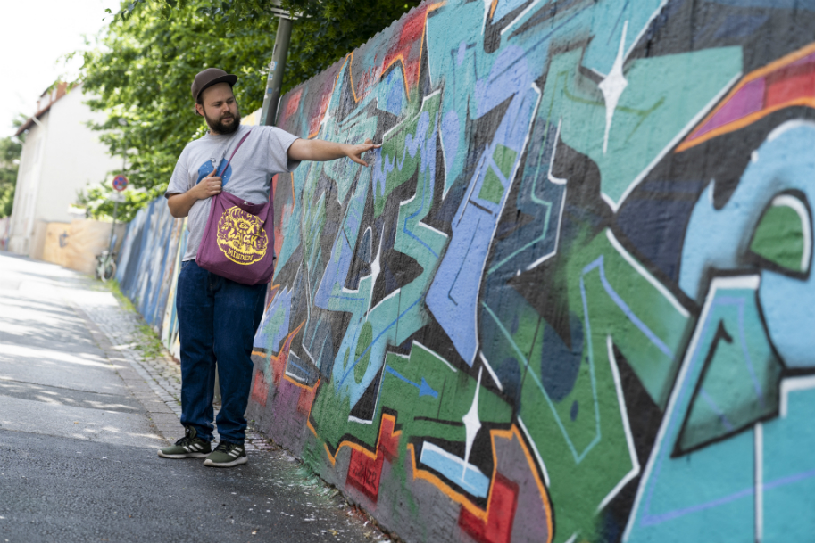 Sven Niemann, Mitglied von Generation Arts, eines Zusammenschlusses lokaler Akteure aus der Kunst- und Kulturszene Paderborns und wissenschaftlicher Mitarbeiter bei dem Graffiti-Projekt „Ingrid“ an der Universität Paderborn, zeigt bei dieser Führung die verschiedenen Arten, die an den Wänden in der Innenstadt Paderborn zu finden sind. Er erläutert, was hinter den Graffiti steckt, wie sie entstehen und wie sie geschichtlich einzuordnen sind.