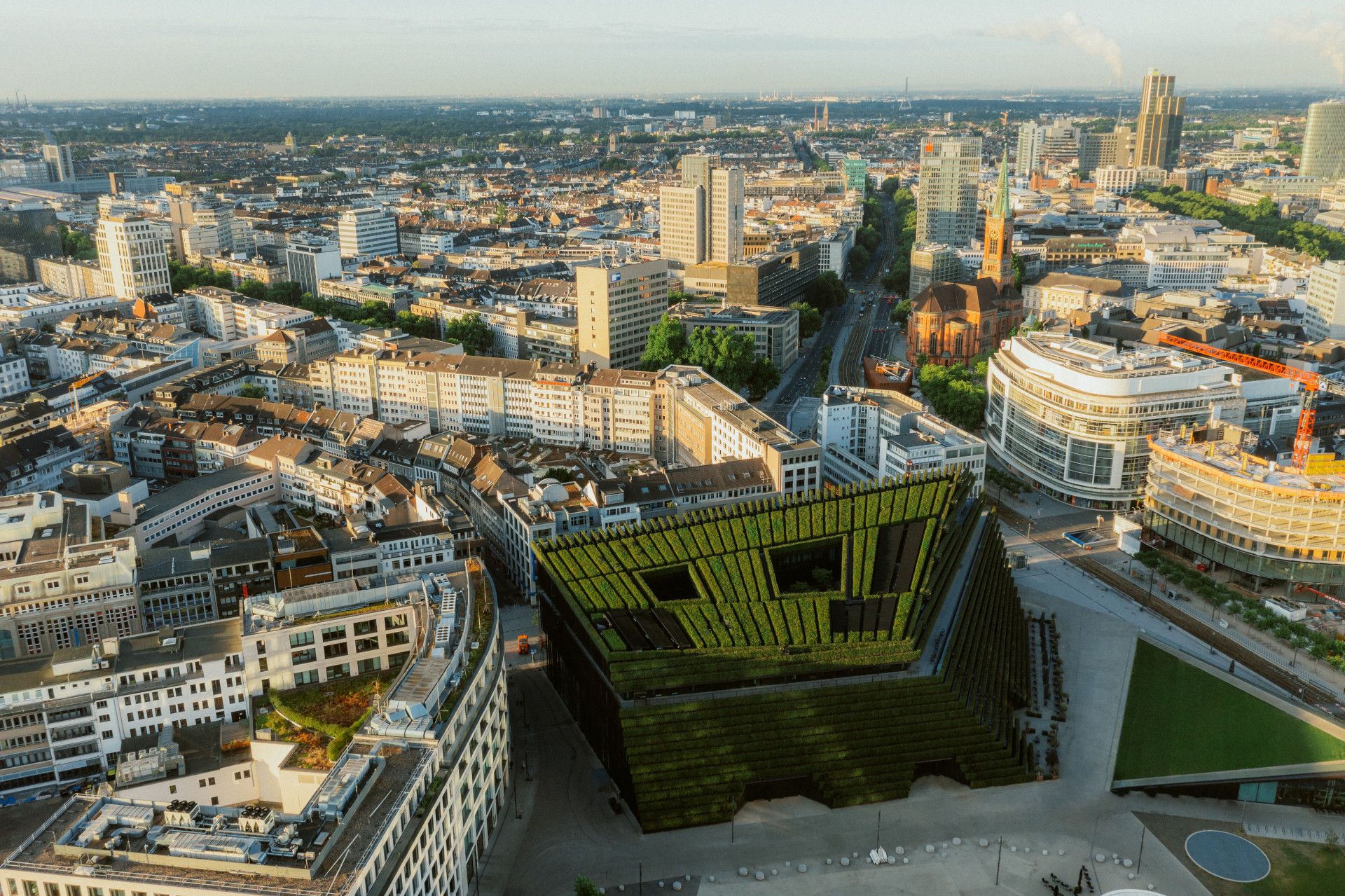Ein echter Hingucker, auf den ich richtig stolz bin, ist auch der jüngste Neubau in meiner „neuen Mitte“: der Kö-Bogen 2. Zwischen dem Schauspielhaus und dem Dreischeibenhaus, zwei weiteren architektonischen Highlights, wachsen auf dem Dach des Hauptgebäudes 30 000 Hainbuchenhecken. Rekord! Europas größte grünste Fassade steht bei mir in Düsseldorf.