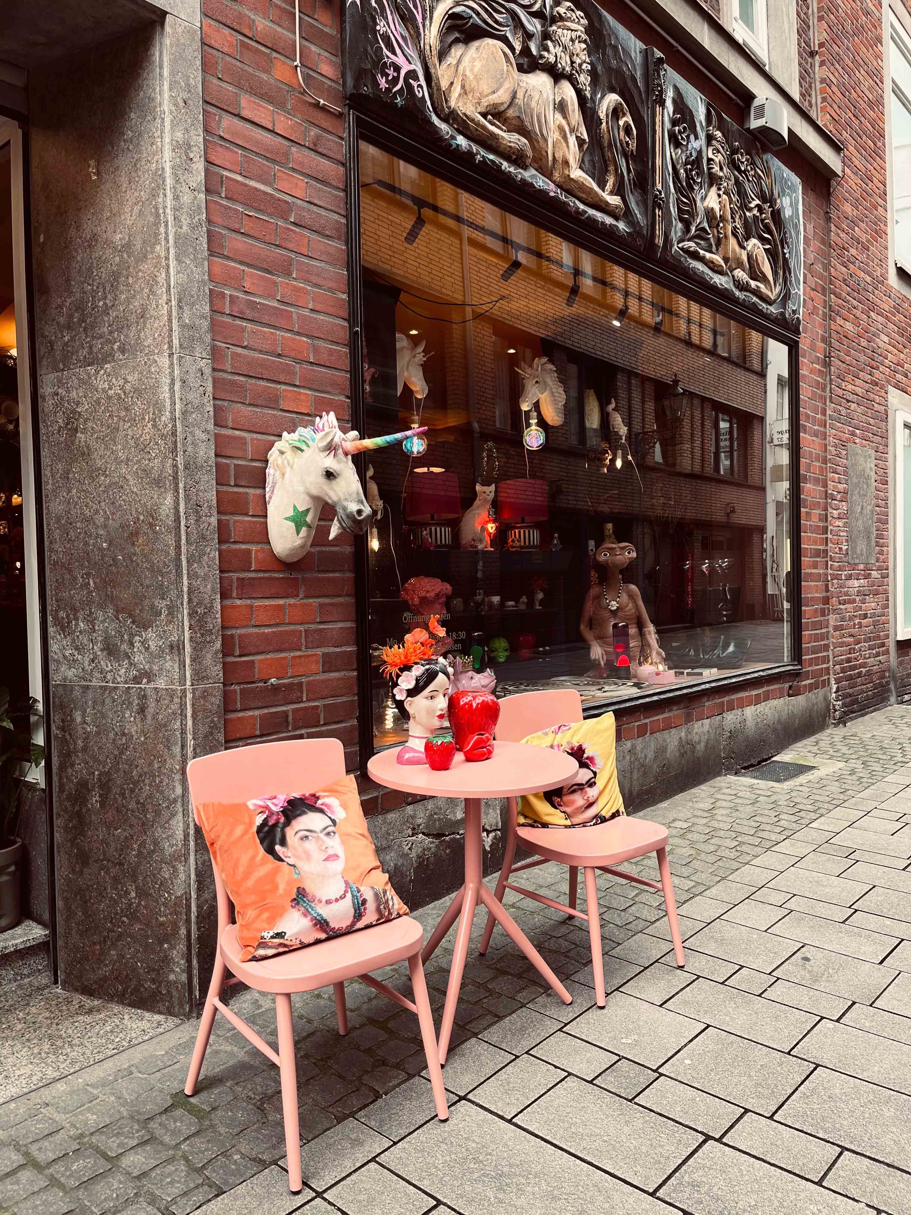 Wir entschließen uns allerdings weiterzugehen, denn es gibt noch so viel zu sehen. Auf dem Weg Richtung Kiefernstraße, entdecken wir eher durch Zufall das Weltkunstzimmer. Ein Szene-Ort, der die kulturelle Facette der Stadt zeigt. Auf dem Gelände der ehemaligen Backfabrik finden regelmäßig kleine Konzerte und Ausstellungen junger Kunstschaffender statt. Fasziniert vom einzigartigen Industriecharme lünkern wir in jede Ecke des Geländes.