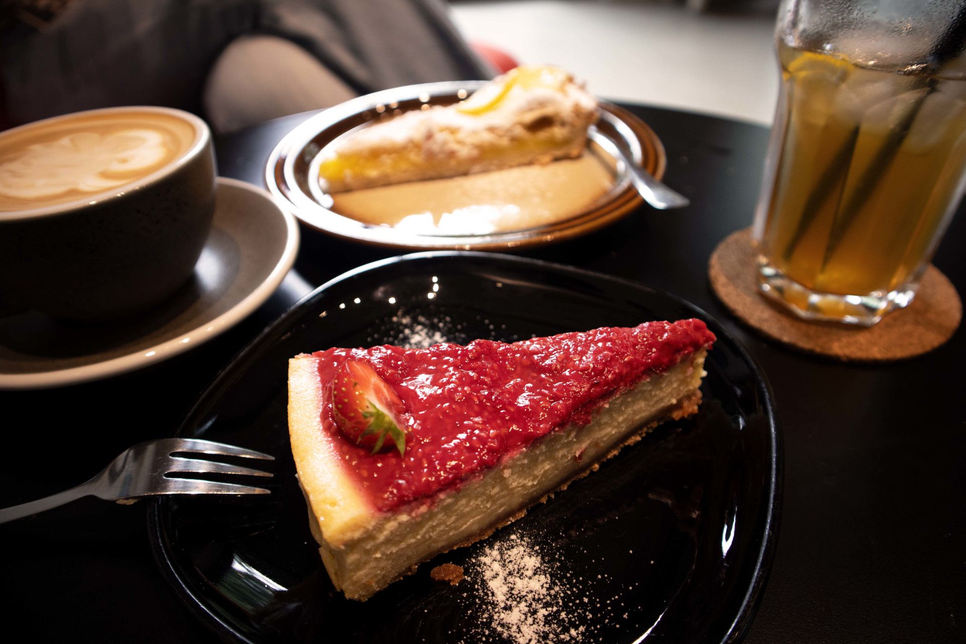 Zeit für Kaffee und ein zweites Frühstück. Im Café Ütelier ist alles handgemacht und wir können uns kaum entscheiden zwischen süß und herzhaft. Daher gibt’s ein Tomate-Mozzarella-Brötchen und zwei Kuchen, Himbeere und Lemon, zum Teilen. Köstlich! Auch die Einrichtung gefällt uns richtig gut: Industriecharme, ein Mix aus stylischen und antiken Möbeln und ein großer Außenbereich. Hier bleiben wir erstmal.