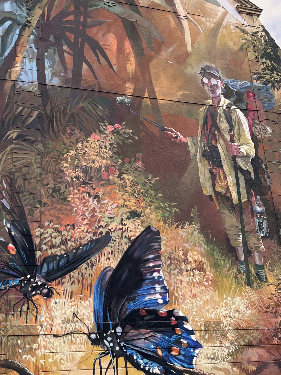 Bevor wir unsere Reise Richtung Norden antreten (natürlich mit der Bahn), wollen wir unbedingt noch am Mural „Der Schmetterlingsfänger“ vorbeischauen. Direkt am Lidl-Parkplatz ist eine Interpretation des Bildes von Carl Spitzweg zu sehen. Eine Überführung in die heutige Zeit. Ein besonders beeindruckendes Bild, für das sich der kurze Umweg gelohnt hat. Aber jetzt heißt es: Rein in die Bahn und ab in den Norden!