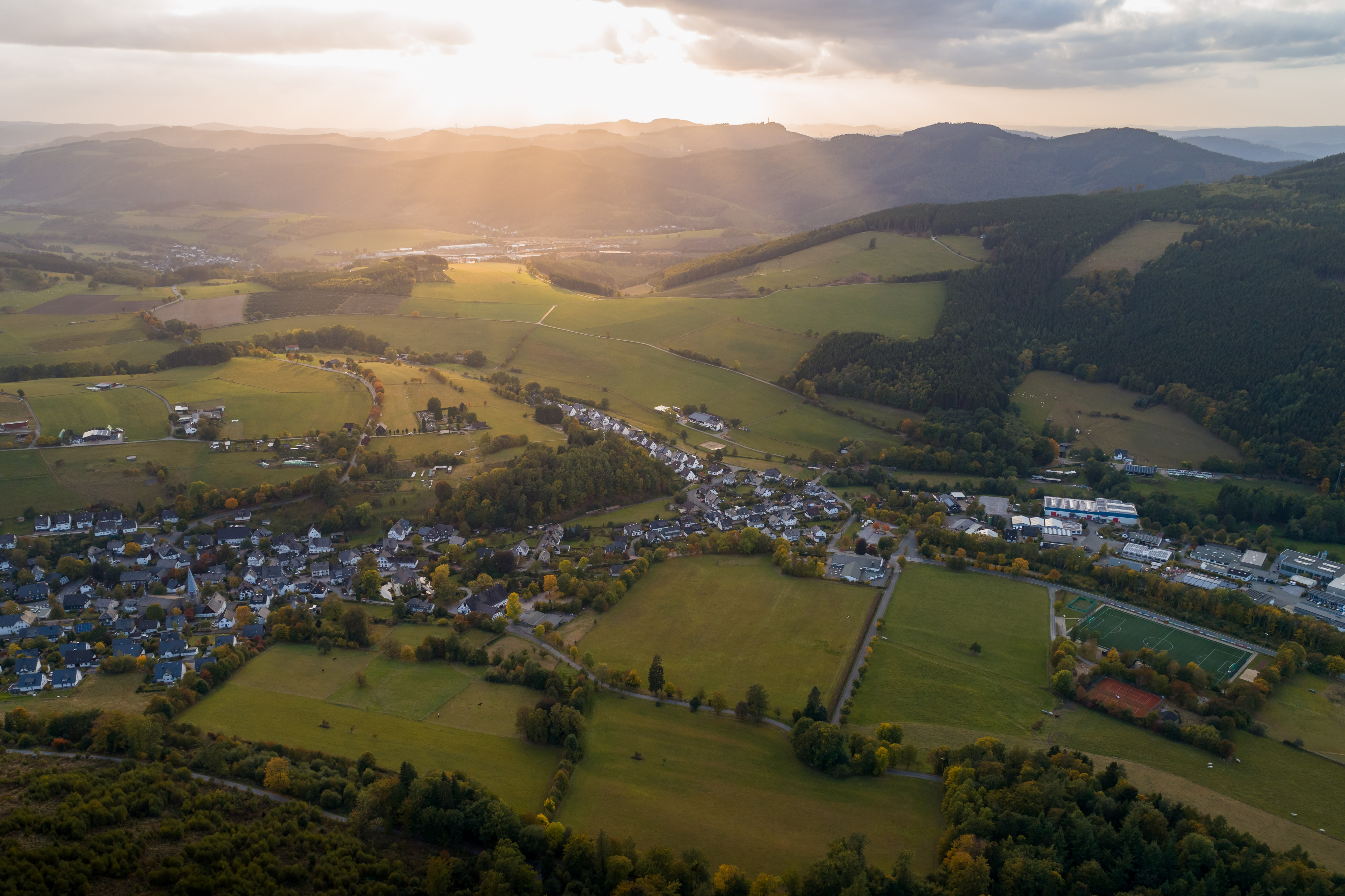Tourismus NRW e.V., Blick von den Bruchhauser Steinen aufs Sauerland Paul Masukowitz, Sauerland-Tourismus e.V. / Paul Masukowitz / REACT-EU, Gravelbiking über Pastorenwiese CC-BY-SA Sauerland-Tourismus e.V. / Jonas Dülberg CC-BY-SA Paul Masukowitz, Sauerland-Tourismus e.V., Zwei Personen fahren mit Gravelbikes auf einem unbefestigten Waldweg im Sauerland. CC-BY-SA