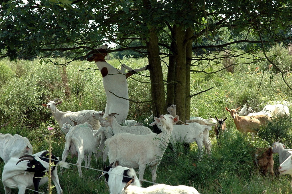 Marc Eickelmann, Stadt Troisdorf, Sandiger Weg durch Heidelandschaft bei Troisdorf mit Bäumen und Sträuchern. Naturregion Sieg, Rhein-Sieg Tourismus, Eine Ziegenherde grast unter einem Baum in der Heide. Maren Pussak, Das Bergische, Nebel liegt über einer Heide mit blühendem lila Heidekraut. Naturregion Sieg, Rhein-Sieg Tourismus, Eine Gruppe von Kühen steht auf einer grünen Weide bei Troisdorf unter einem klaren blauen Himmel.