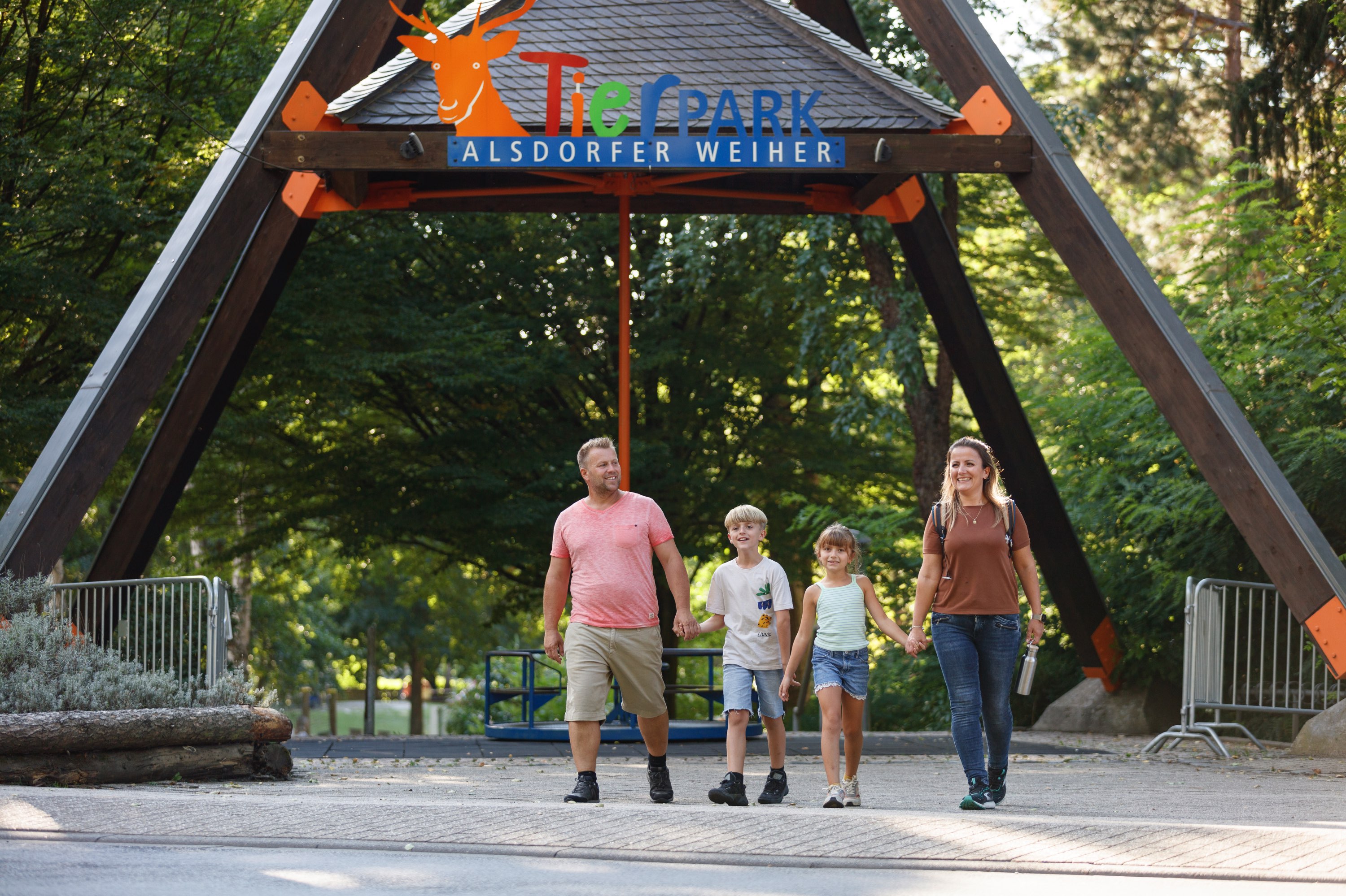 Der Tierpark Alsdorfer Weiher ist ein abwechslungsreiches Ausflugsziel für die ganze Familie. Rund zwanzig, überwiegend heimische Tierarten leben auf dem Gelände. Zudem laden Spielflächen zum Rasten und Toben ein, ein Bootsverleih macht eine kleine Rudertour auf dem Kahnweiher möglich. Als Pausenorte bieten sich Liegewiesen an, die Gelegenheit für ein gemütliches Picknick bieten oder der Restaurant-, Café und Biergartenbetrieb des Hauses Broichtal.