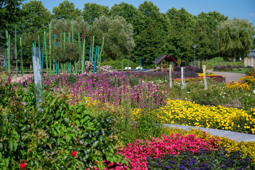 Direkt am Historischen Stadtkern lädt der Gartenschaupark mit seiner großzügigen Seenlandschaft zum Erholen und Entdecken ein: Üppig blühende Beete in Tropfenform, ein großer Kletterspielplatz, das tolle Hüpfkissen und ein Wasser-Matsch-Bereich mit Strandkörben ziehen die Besucher im Parkteil Mitte schnell in ihren Bann. Die Stufen der Seeterrassen laden zum Verweilen und Entspannen ein. In den Feuchtwiesen des europaweit bedeutsamen Naturschutzgebietes können Gäste sogar Wasserbüffel beobachten. Wer mag, findet eine Übernachtungsmöglichkeit in Camping Pods oder den schmucken Hexenhäuschen.