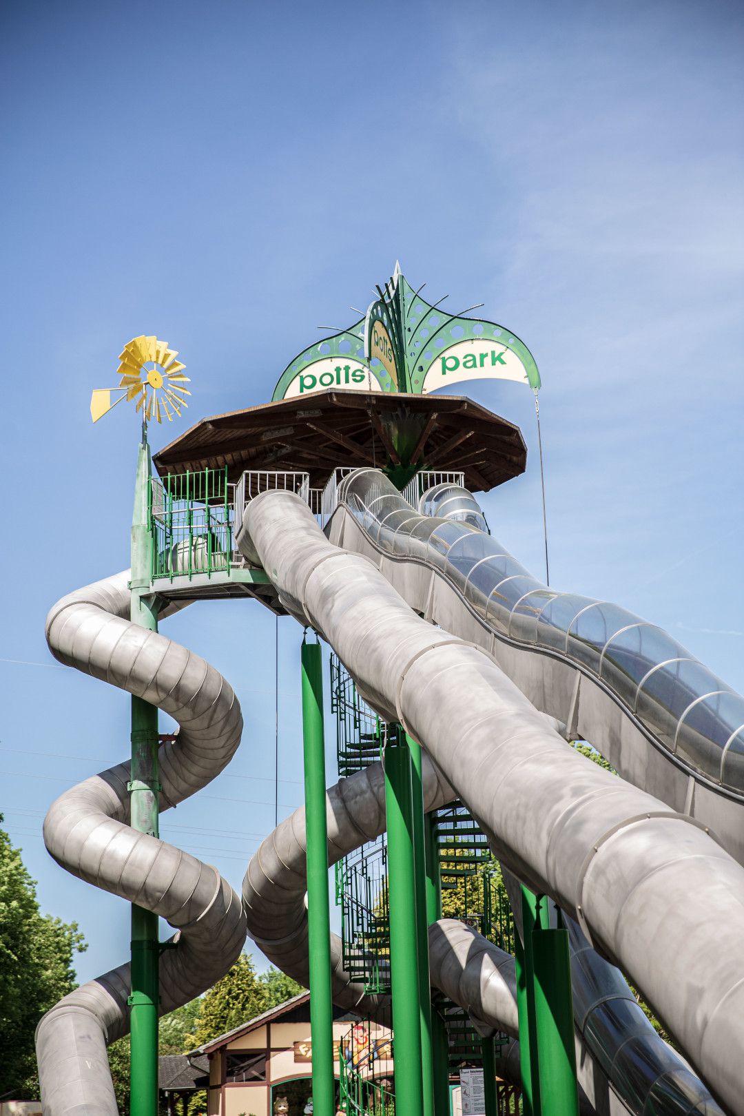 Kaum im Park angekommen, hat die kleine Amalie als erstes die Kindereisenbahn kontrolliert. Ein Glück, sie fährt noch. Die Vierjährige ist erleichtert, der Tag also gerettet. Dabei folgt der eigentliche Höhepunkt des Familienausflugs in Potts Park in Minden erst noch. Denn auf dem Schoß ihrer Mutter wagt sich das kleine Mädchen heute das erste Mal in die Wildwasserbahn. Ihre beiden älteren Schwestern haben schon zwei Runden im „Pottwal“ hinter sich. Und als das Wasser sie nass spritzt, strahlen nicht nur Eva und Charlotte, sondern auch Amalie übers ganze Gesicht. „Die Kinder konnten es kaum erwarten und haben die Tage gezählt“, sagt die Mutter der drei Mädchen, die den kleinen Freizeitpark im Teutoburger Wald schon aus ihrer eigenen Kindheit kennt. Aber auch der Vater der Mädchen ist mit von der Partie, als Parkbetreiber Henrik Pott die Familie Reinke zu einer Fahrt im „Pottsblitz“ einlädt. Es ist ihr erster gemeinsamer Ausflug seit langer Zeit. Die Sonne strahlt. Und kaum setzt sich die kleine Achterbahn in Bewegung, ist das Gejohle groß. Freudig strecken die Kinder die Arme in die Höhe und wollen gleich noch eine Runde drehen. Henrik Pott schaut zufrieden drein. „Endlich ist wieder Kinderlachen im Park zu hören.“